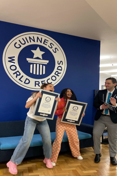 The teens recorded their experience in the GWR office, attempted talking in a British accent and whipped up some viral dance moves.