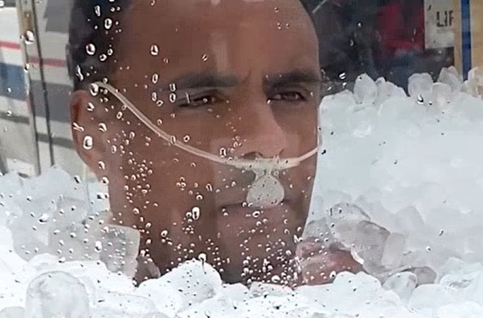 André Belibi Eloumou (France) spent over four hours in an ice bath, breaking the Guinness World Records title for longest duration full body contact with ice (male).