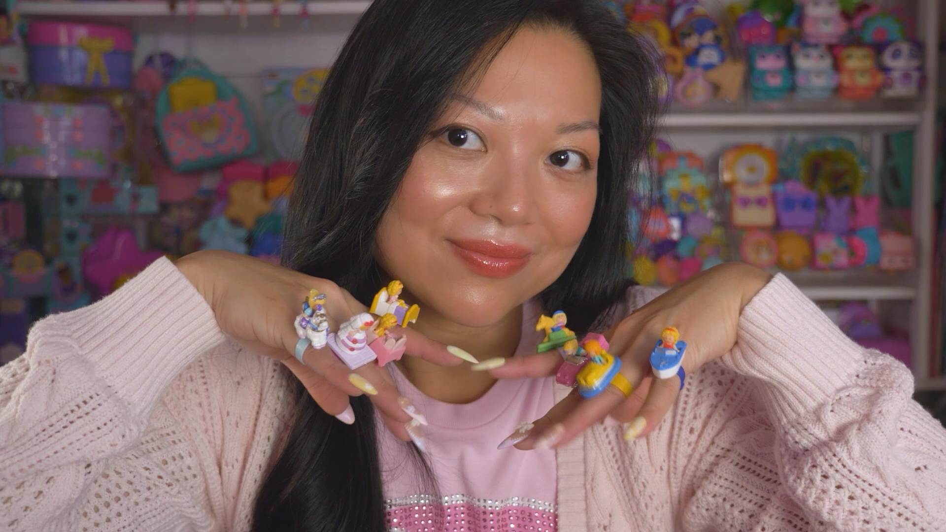 Kerchie loved Polly Pocket as a child but gave her collection away when she grew older. In 2019 she decided to start a new collection and began buying some of the items she loved when she was younger. The first she purchased for was a pink Jewel Magic Ball.